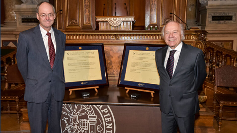 Am 28.11.2017 fanden im Großen Festsaal der Universität Wien die Ehrenpromotionen von Herrn Prof. Wolfgang Ernst und Herrn Prof. Lajos Vékás statt.