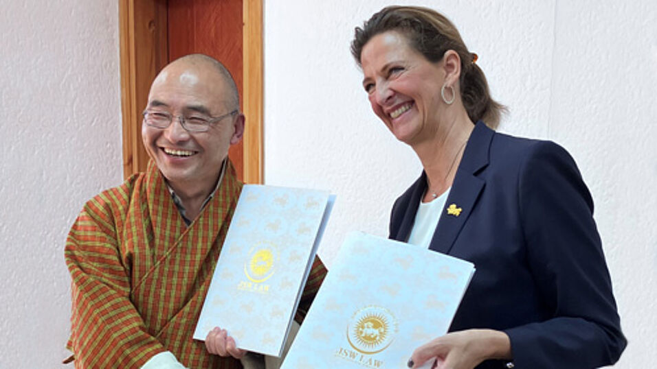 Vom 28.10. bis 3.11.2023 besuchten die Dekanin Prof. Zöchling-Jud und Prof. Windischgrätz unsere Partneruniversität JSW School of Law, in Paro, Bhutan, um das 2016 abgeschlossene Fakultätsabkommen zu erneuern und die Kooperation zu bekräftigen.
